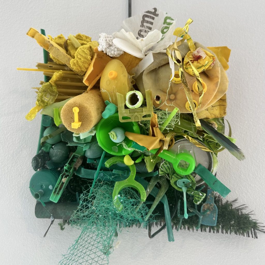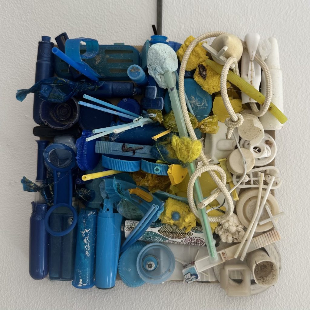Estas piezas artísticas están creadas con fragmentos de plástico recogidos en la playa, organizados en un degradado. Cada color, cada forma, es un vestigio del impacto humano en el océano, convertido ahora en arte. Un recordatorio visual de la crisis del plástico en las costas y una invitación a mirar más allá de la contaminación, hacia la posibilidad de recuperación y cambio.