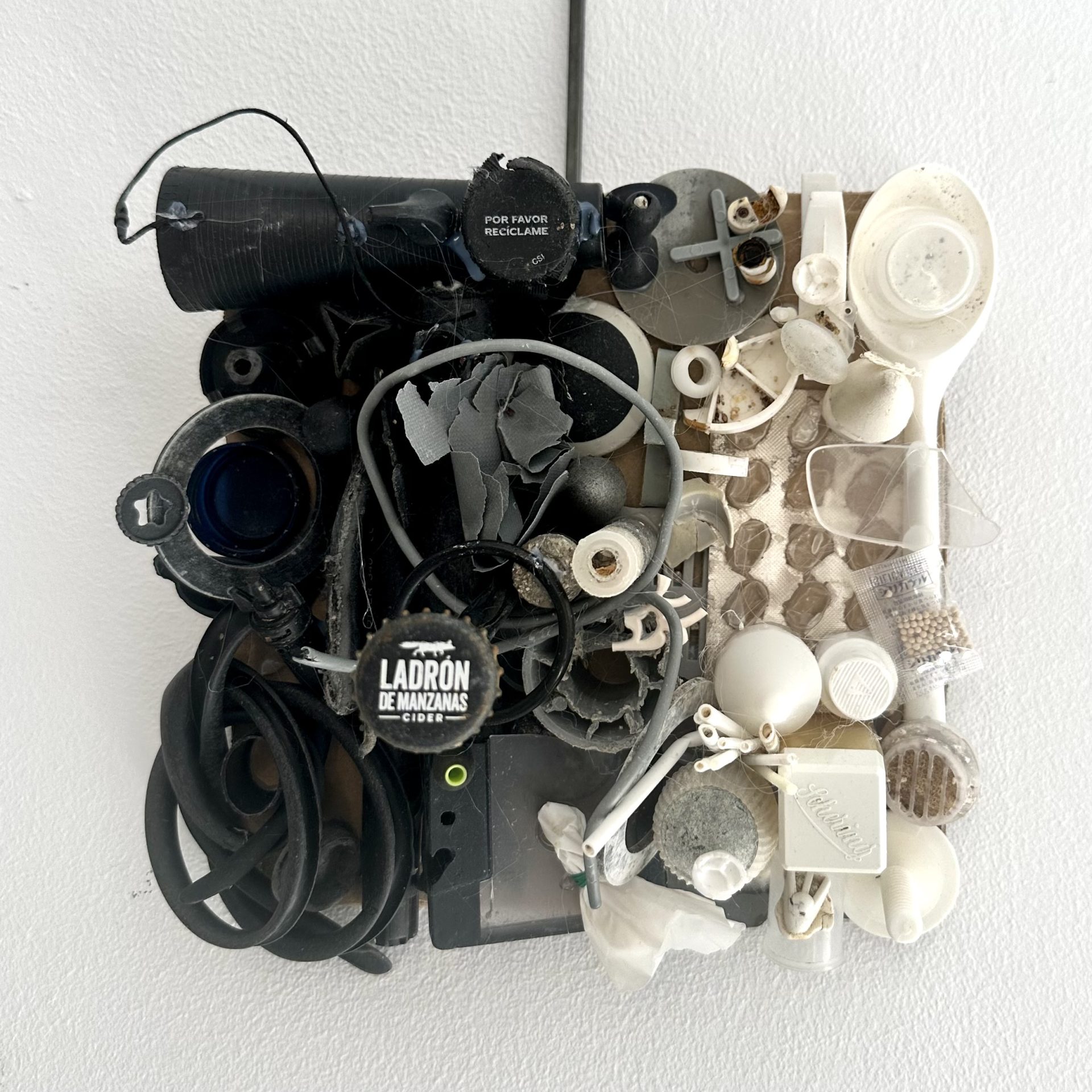 Arte con plásticos recogidos en la playa, organizados en un degradado. Cada fragmento es un residuo devuelto por el mar, reflejando el impacto de la contaminación en las costas. Un recordatorio visual de la crisis del plástico en el océano.